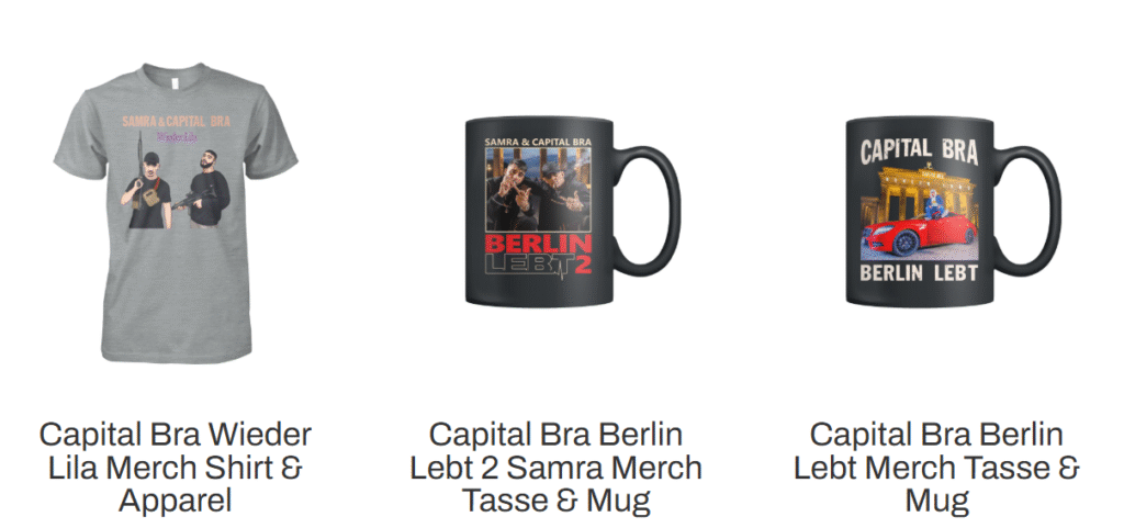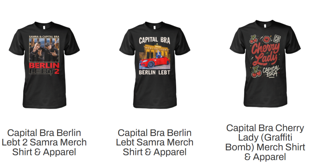 Capital Bra ist mehr als Musik – es ist ein Lifestyle. Sein Merch ist ein Symbol für Berlin, Straßenkultur und Fan-Community.